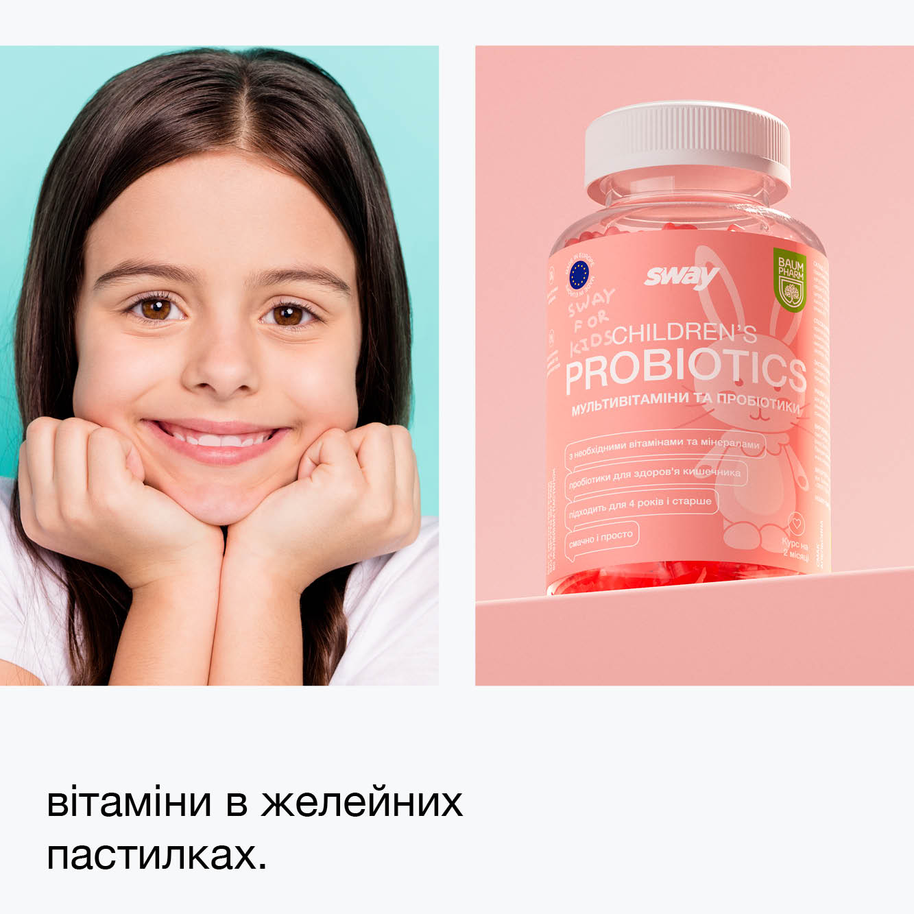 Probiotics + Vitamins Kids gummies support gut health and digestion while promoting overall well-being. With a combination of beneficial probiotic strains Bifidobacterium infantis and Lactobacillus rhamnosus, plus essential vitamins like niacin, pantothenic acid, and vitamin B6, these gummies help maintain a balanced microbiome and support digestive comfort—all in a delicious strawberry-flavored gummy.