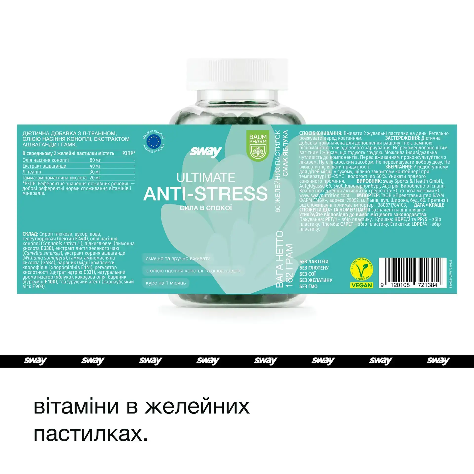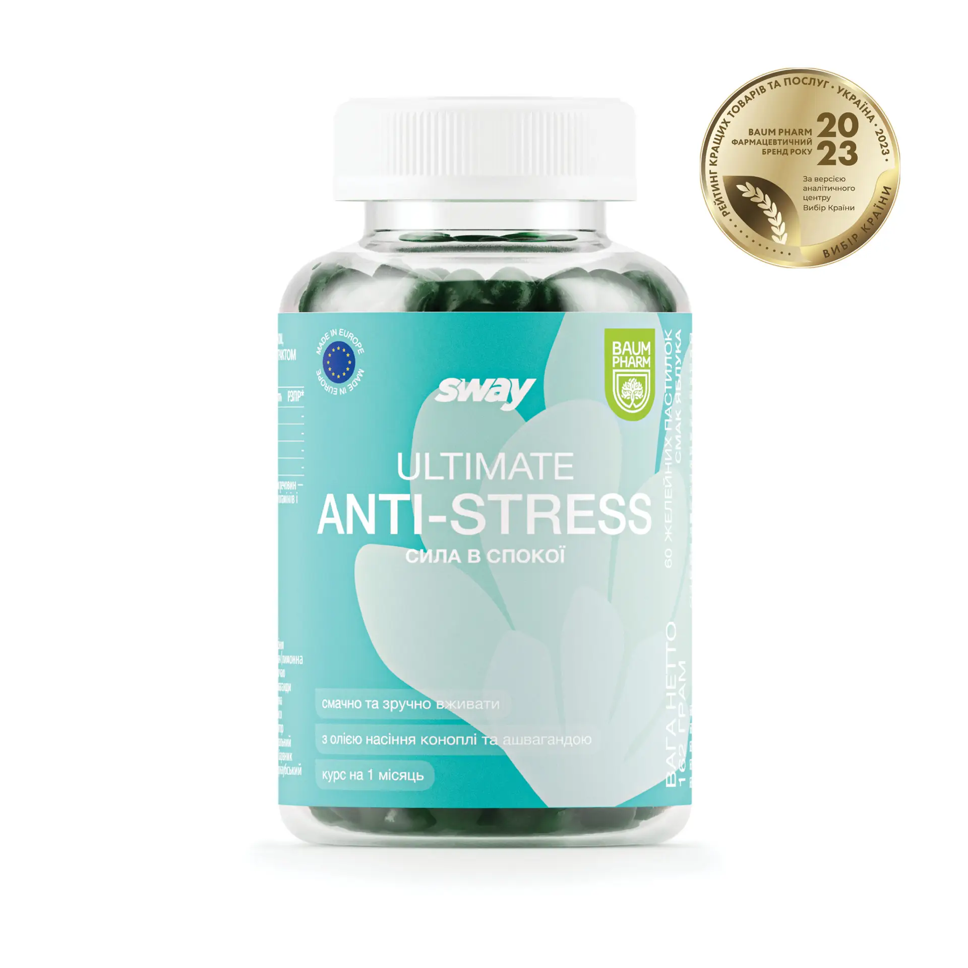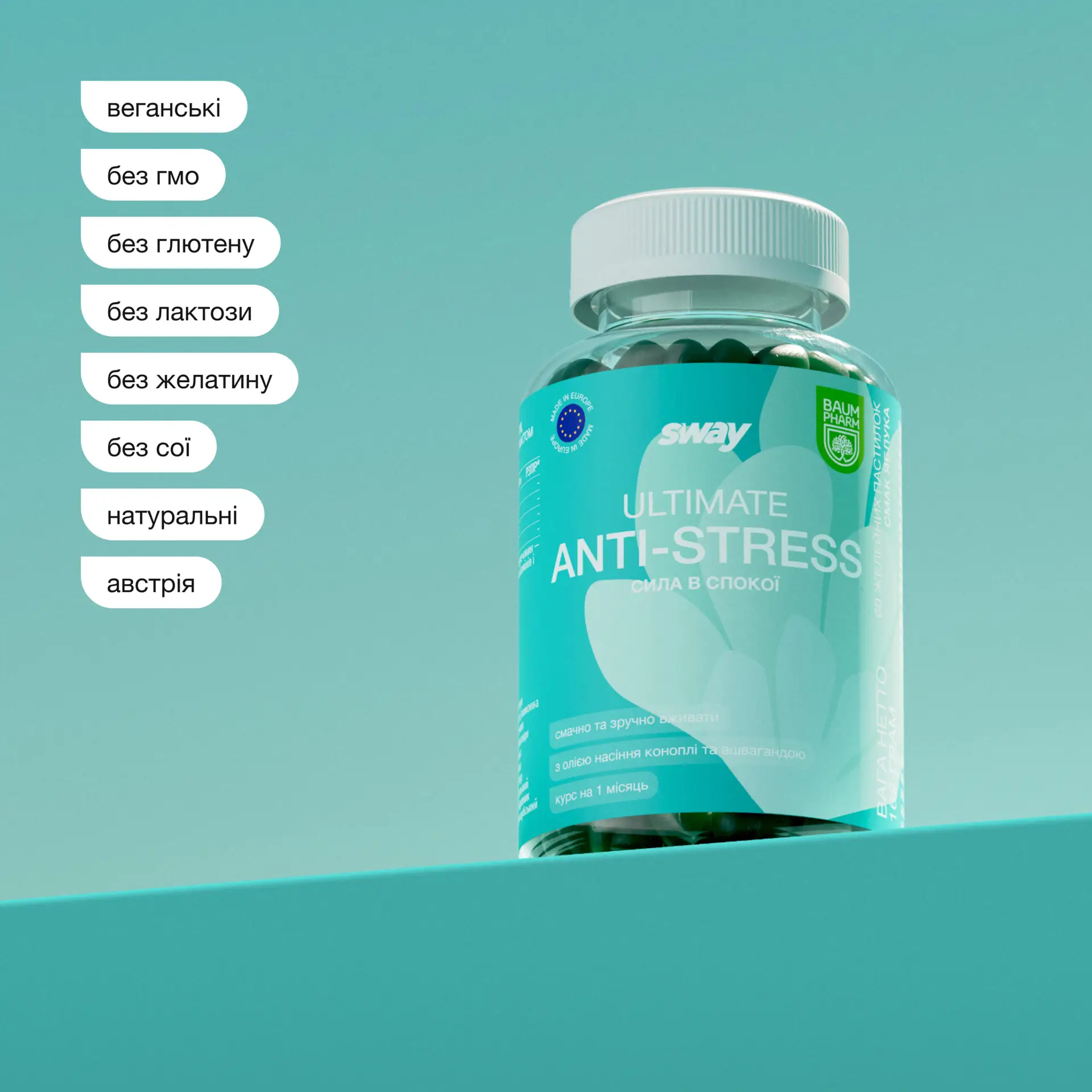 Ulti­ma­te Anti-Stress is for­mu­la­ted with 80 mg of hemp seed oil, 40 mg of ashwa­gan­dha extra­ct, 30 mg of L‑theanine, and 20 mg of GABA per ser­ving (2 gum­mies) to help you mana­ge stress and stay rela­xed throug­hout the day. Hemp seed oil is rich in essen­ti­al fat­ty acids that sup­port brain func­tion, while ashwa­gan­dha is a well-known adap­to­gen that helps the body cope with stress. L‑theanine, found in green tea, pro­mo­tes calm­ness and focus, while GABA (Gam­ma-Ami­no­bu­ty­ric Acid) helps regu­la­te the ner­vous sys­tem and redu­ce fee­lings of anxie­ty. Whe­ther you’­re facing a stressful day or need help unwin­ding, this gum­my offers a con­ve­ni­ent and natu­ral way to sup­port men­tal well-being.
